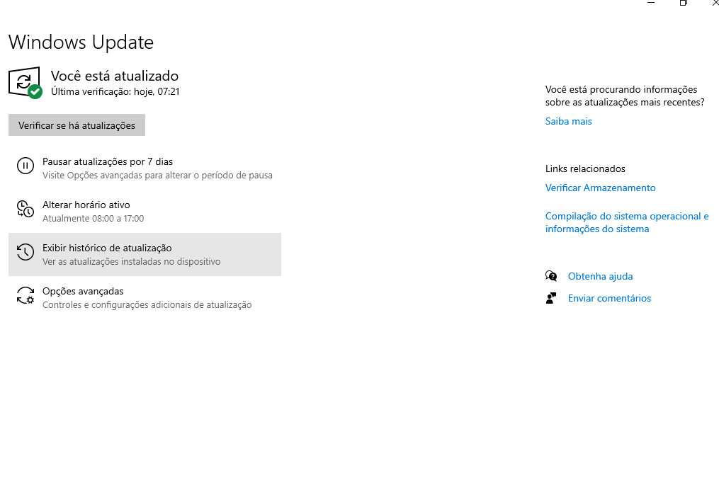 2 - Clique em Exibir histórico de Atualização e após isso clique em Desinstalar atualizações