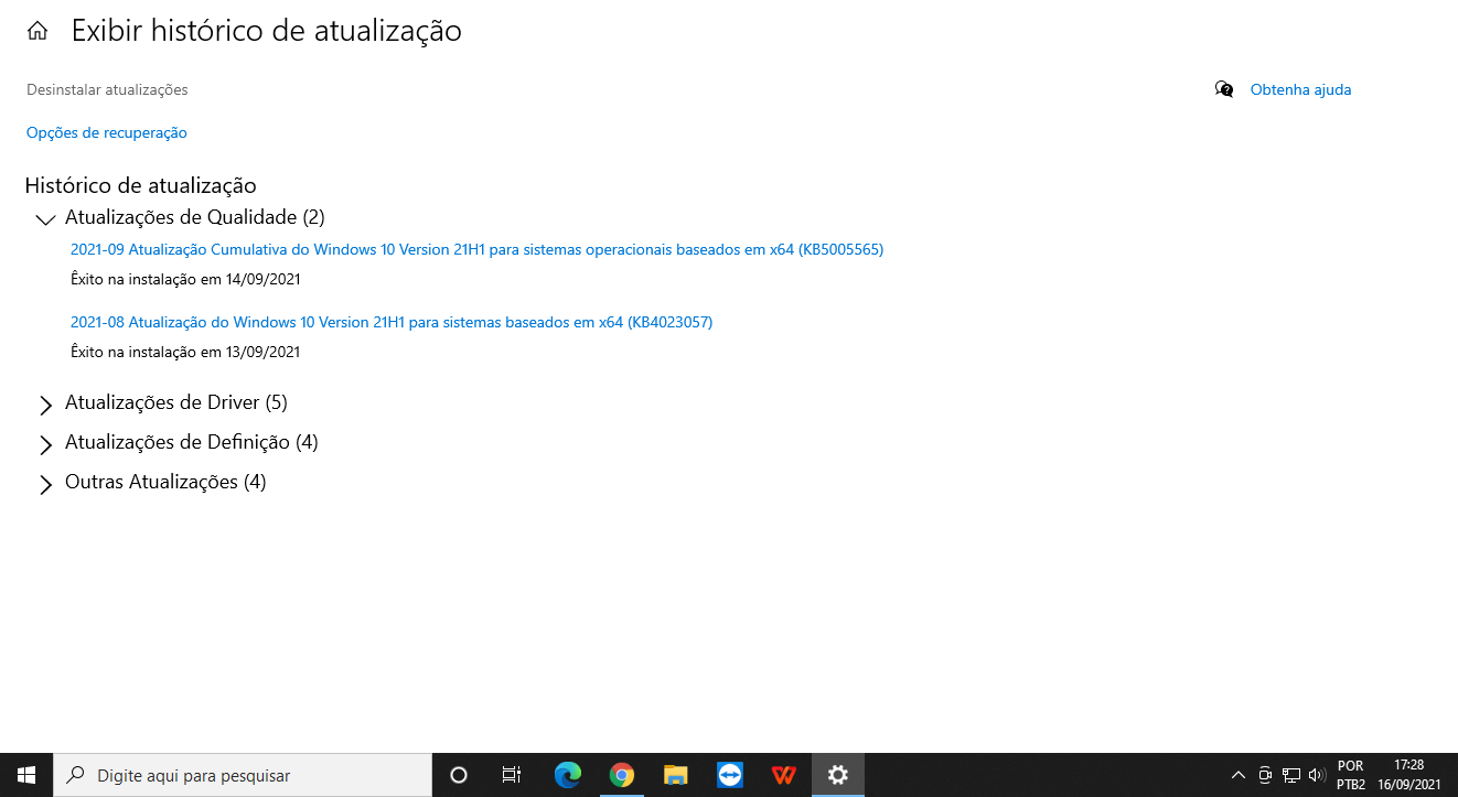 Após a atualização do pacote KB5005565 em computadores Windows 10, o compartilhamento de impressoras foram afetados por algum defeito da própria atualização da Microsoft, neste caso, recomendamos a desinstalação do pacote, a ser realizado pela equipe técnica da TI. Para realizar a desinstalação do pacote de atualização favor seguir os passos a seguir: